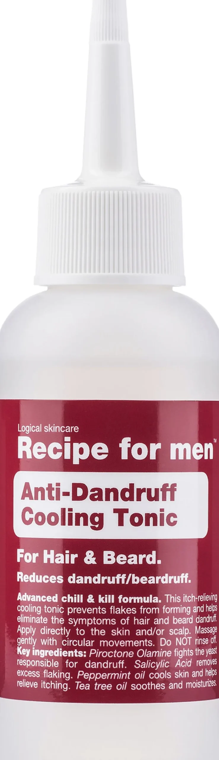 En kølende tonic, der modvirker skæl i hår og skæg, samtidig med at den effektivt lindre og reducere kløe. Den blødgørende tonic køler og fugter tør og irriteret hovedbund. I modsætning til en shampoo, der skal vaskes ud, skal tonicen blive siddende i håret, hvilket betyder, at den fortsætter med at virke hele dagen igennem.