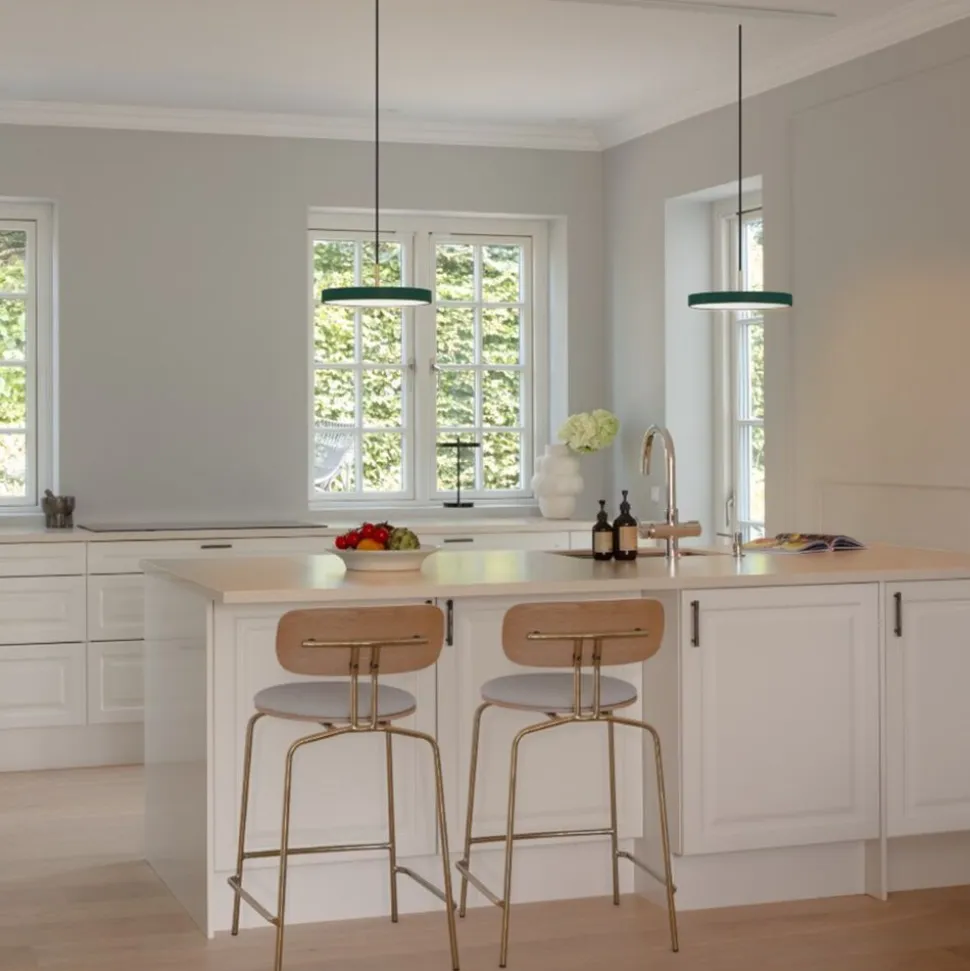 Asteria Plus tager det klassiske Asteria-vedhæng til nye højder ved at tilbyde justerbar lystemperatur, der gør det muligt at tilpasse lyset til den specifikke indstilling. Asteria Plus pendlen er kompatibel med skinnebelysning og kan dæmpes via en ekstern lysdæmper, hvilket gør den perfekt til kontoret, private spisestuemiljøer eller køkkenområder. Den kombinerer funktionalitet og alsidighed og imødekommer behovene i områder, hvor tilpasningsevne og stil er af største vigtighed. Asteria Plus pendlens slanke udseende og rene linjer repræsenterer minimalistisk skønhed, mens et indbygget LED-panel tilfører rummet blød og tidløs belysning. Med en skjult knap i lampens top kan du nemt justere lystemperaturen og skabe den perfekte atmosfære, uanset om det er til fokuseret arbejde eller en afslappet atmosfære. Lampen kan dæmpes ved brug af en ekstern lysdæmper. Asteria Plus fås i en række forskellige farver i medium og mini og har en messingplade, der nemt kan udskiftes med stål eller sort, hvilket giver uendelige Designmuligheder, der passer til din personlige stil