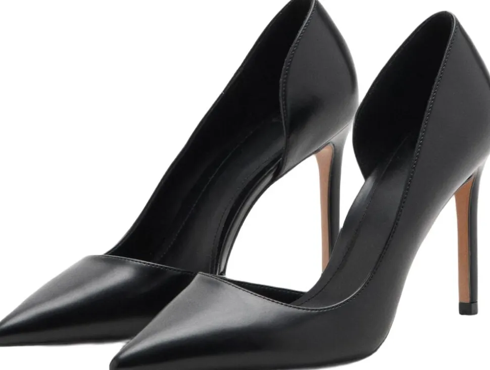 Imiteret læder, asymmetrisk Design, spids, slids i siden, stilethæle, 10 cm hæl, fest- og ceremonikollektion, høje hæle. INGEN OVERSÆTTELSE 23,6