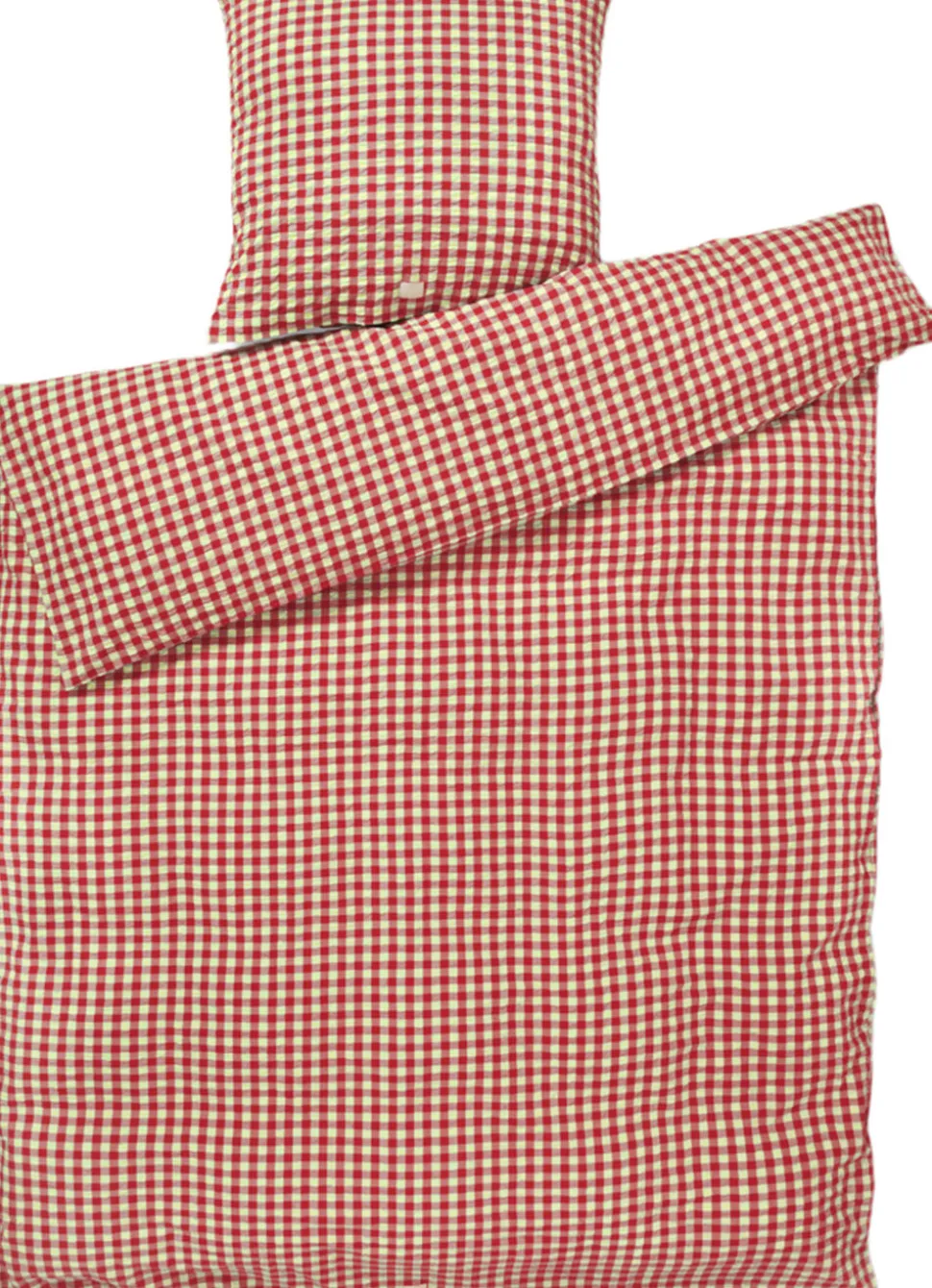 Sanseligt, behageligt, 100% økologisk og GOTS-certificeret. Sengetøjet Bæk&Bølge fra JUNA er produceret ud fra ansvarlige principper og har en helt speciel vævning med en tekstur, der vækker minder. Måske kan du huske følelsen af stoffet fra barndommen, bedsteforældrene eller sommerhusferierne? Ikke alene er der noget nostalgisk over materialet det er også funktionelt og lader luften cirkulere mellem din hud og stoffet. Det kalder på en god nats søvn, så du kan restituere og lade op til en ny dag. Bæk&Bølge har det helt rigtige casual og naturlige udtryk, der præger tidens mode og indretningstrends. Mærk stemningen. Uperfekt på den helt perfekte måde. Sengetøjet til dobbeltdyne med ekstra længde måler 200×220 cm og kommer i blomme/rosa, hvor dybde møder lethed i en smuk balance. Den mørke, forførende blommefarve tilfører et strejf af subtil luksus og sofistikeret varme, mens den støvede rosa nuance har en blød og beroligende karakter, der giver en følelse af harmoni og velvære. Inspireret af tidens længsel efter både eskapisme og jordforbindelse skaber denne farvekombination en stemning af ro og sanselig velvære perfekt til at omfavne hverdagens små pusterum. Selvom farverne selvfølgelig har en sæsonpræget appel, er de samtidig så tidløse og raffinerede, at JUNA-sengetøjet nemt kan bruges året rundt. Og år efter år. Har du flere forskellige Bæk&Bølge-sengesæt fra JUNA, kan du lege med at blande de forskellige farver og mønstre på kryds og tværs og skabe dit eget drømmende univers i soveværelset, i sofaen, i hængekøjen, på altanen, eller hvor du nu tager din dyne og pude med hen. Du kan gøre lige, hvad du drømmer om. (GOTS Organic Certified by Control Union, CU1026087)