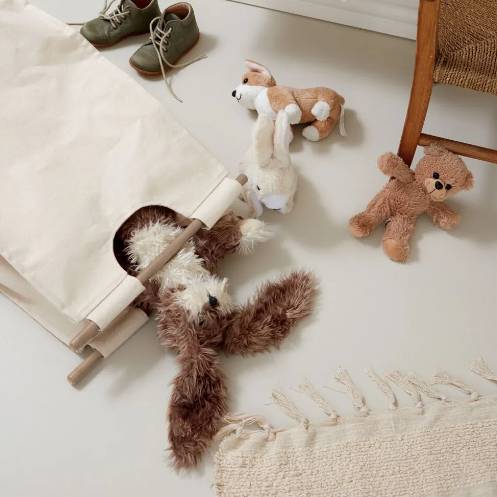 Tekstilposen fås i tre forskellige varianter, så du kan tilpasse opbevaringsløsningen til din personlige stil: en klassisk natur, en natur med kastanjerøde striber, eller en natur med koboltblå striber. Uanset hvilken du vælger, giver denne løsning dig mulighed for at tilføje et stilfuldt element til din indretning. Posens indvendige plastlag sikrer, at fugt fra eksempelvis vådt vasketøj holdes inde og med GOTS-certificeringen af tekstilposen kan du være sikker på, at materialet er fremstillet under bæredygtige og socialt ansvarlige forhold.