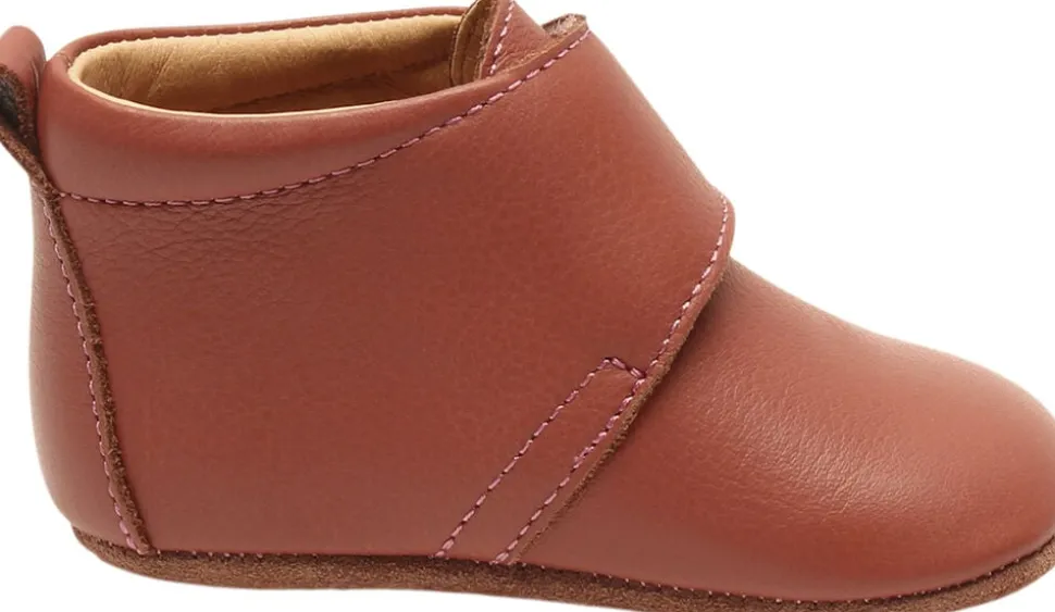 Hjemmesko med velcrolukning, skindfoer og en blød sål af ruskind og skridsikker gummi, der giver den optimale støtte. Hjemmeskoen er produceret i naturligt og åndbart læder, der er lukket rundt om foden og samtidig giver foden plads til at vokse.bisgaard eco care – Naturligt læder der omslutter fødderne- Fri for kemikalier, krom og metaller- Produceret i åndbart materiale