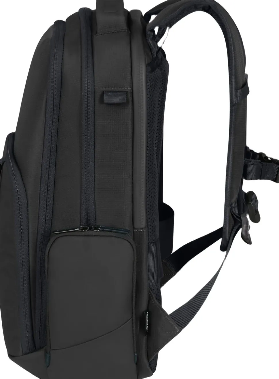 Computer rygsæk med plads til 15,6″ PC og 10,5″ tablet, både det indvendige og udvendige stof er lavet af genbrugsplast, flaskeholder i siden, frontlomme med lynlås, brystrem, ergonomiske stropper, rumindhold 22,5 l, vægt 1,2 kg. 2 års garanti.
