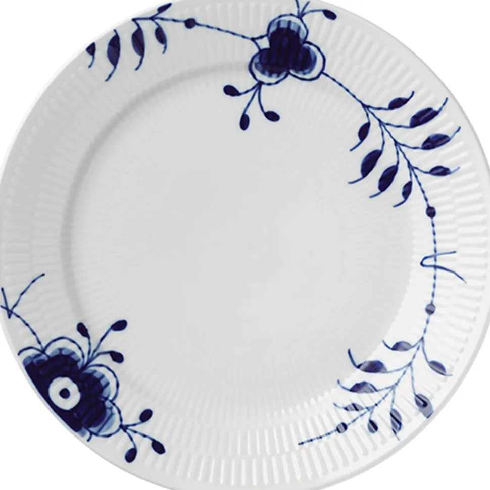 Denne tallerken er en special edition. Den unge designstuderende, Karen Kjældgård-Larsen, præsenterer Royal Copenhagen for en dristig idé: En dramatisk nyfortolkning af det klassiske Musselmalede stel. Hendes design bryder alle traditioner samtidig med, at det håndmalede håndværk er bevaret. Forstørrelsen af det klassiske mønster skaber et ekstraordinært og enestående udtryk, hvor det oprindelige mønster stadig er genkendeligt. Musselmalet Riflet er genfødt. Med denne genfødsel har mønstret fra 1775 gennemgået en udvikling, og en moderne klassiker er født.Tallerkenen med mønster nr. 8 er en specialudgave og fremstilles i et begrænset oplag.