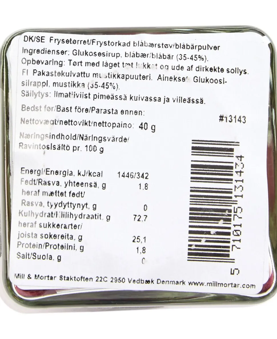 Ingredienser: Glukosesirup, blåbær 35-45%.