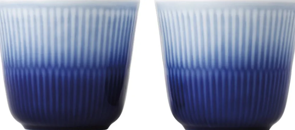 På GamFratesis Blue Mist sæt af to termokrus mødes sprøjemaling med det klassiske, riflede termokrus. Resultatet er et fængslende og kontemporært udtryk, der illustrerer en aftagende nuance fra markant til blød blå, der minder om havets dis. Inde i hvert krus gemmer sig en charmerende overraskelse i form af to blomster, en til hvert krus.