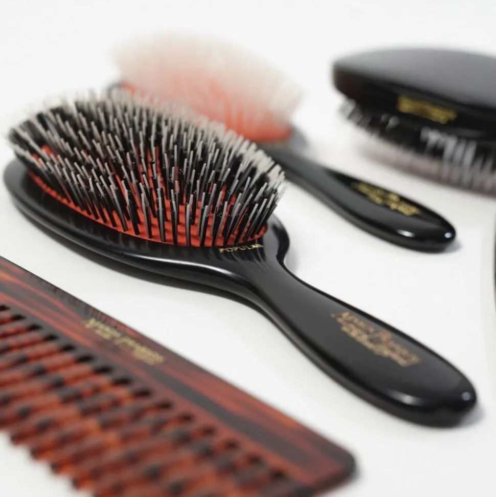 • Masserer og stimulerer hovedbunden: En Mason Pearson børste er mere end bare en hårbørste. Den masserer og stimulerer hovedbunden, hvilket frigiver hårbundens naturlige olier.