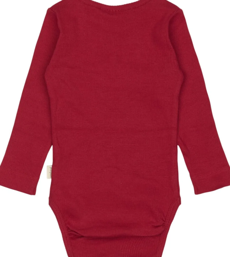 Langærmet body lavet i vores klassiske ribkvalitet. I venstre side af halsåbningen har vi vores signaturåbning med en trykknap til nem åbning. Bodyen lukkes forneden med tre trykknapper, til nem bleskift. Materialet er blødt og meget strækbart, lavet til komfort og leg. Produceret i Indien.