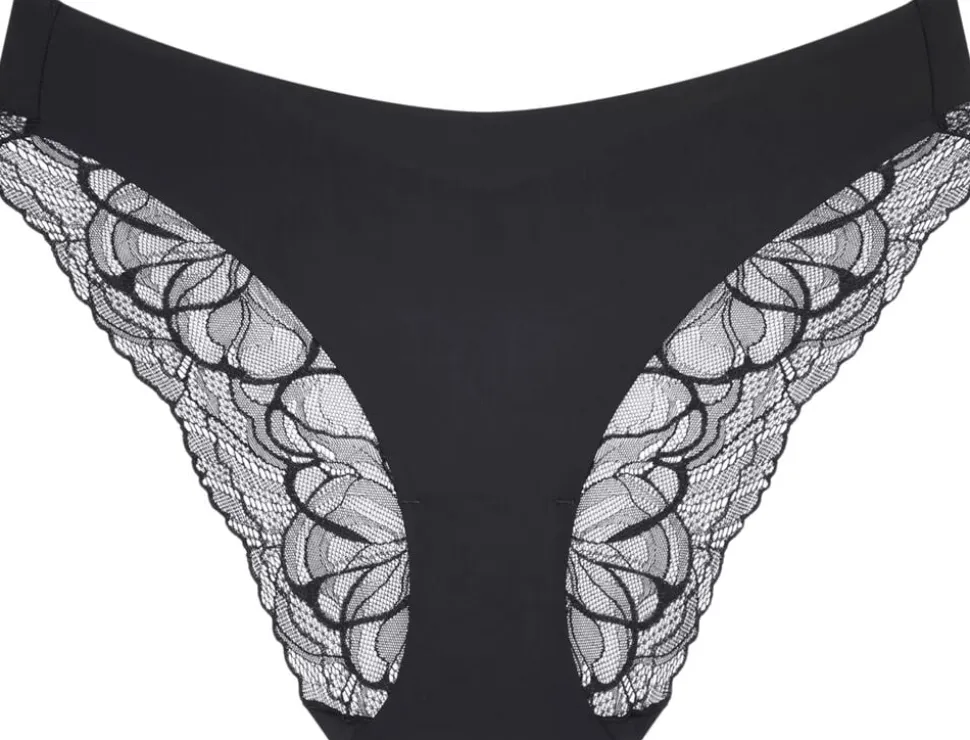 Fin Tai trusse med høj benudskæring. Behagelige sømløse kanter og blød linning. Føles som en ‘second skin’. Trussen er lavet i glat blonde og cremet blød mikrofiber, begge delvis af genanvendt materiale.