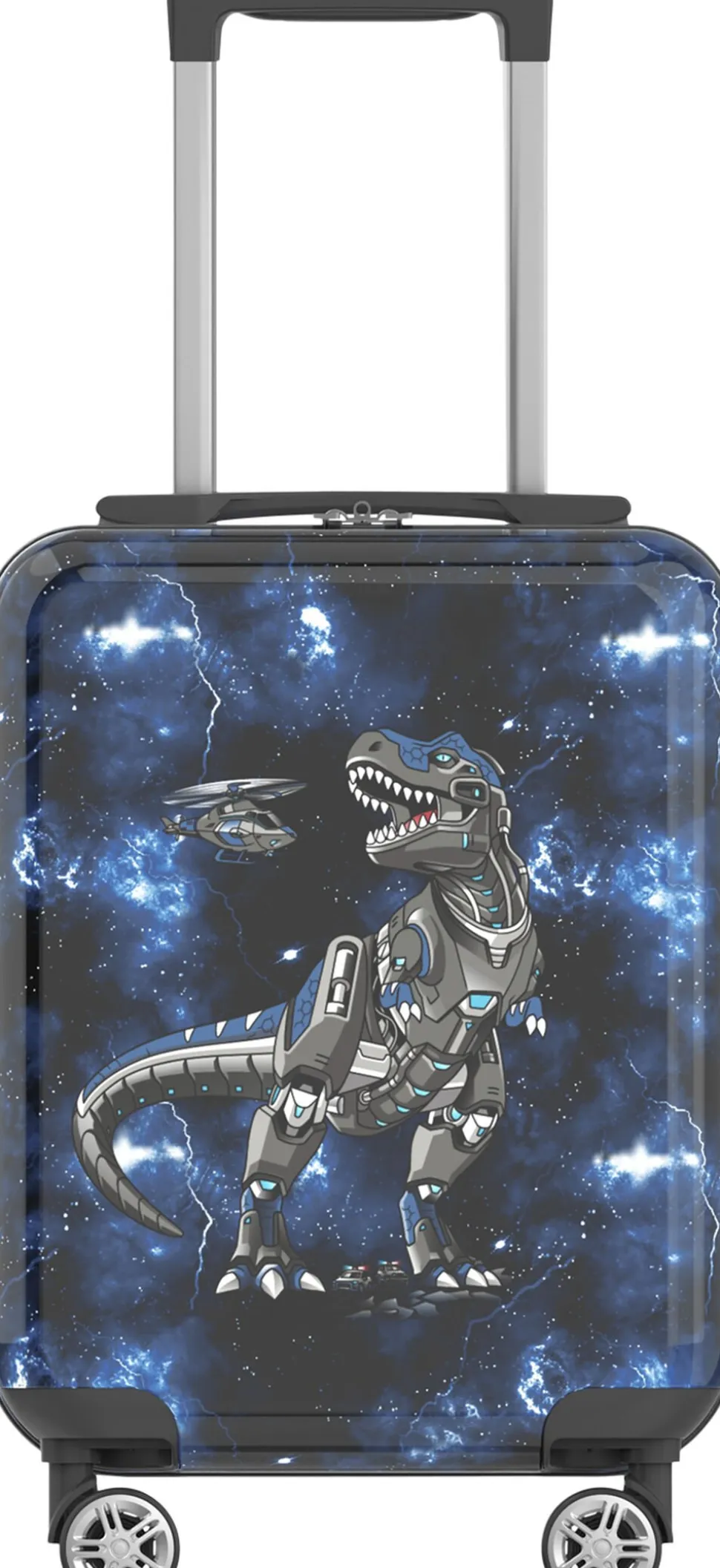 Det er stort at få sin første kuffert! Vores børnekuffert har et magisk design, som virkelig skiller sig ud i mængden. Målene på kufferten tilfredsstiller kravene for håndbagage/kabinekuffert hos SAS og Norwegian. Børnekufferten har 4 dobbelte, stærke og stillegående 360°-spinnerhjul, som gør den let at trille. Med lynlåse i god kvalitet holdes dine ejendele trygge under rejsen. Helforet inderside, opdelt med netlomme, pakkestropper i bunden og et adskilt rum i låget. Integreret teleskophåndtag aflaster arm og skulder for unødig tyngde.
