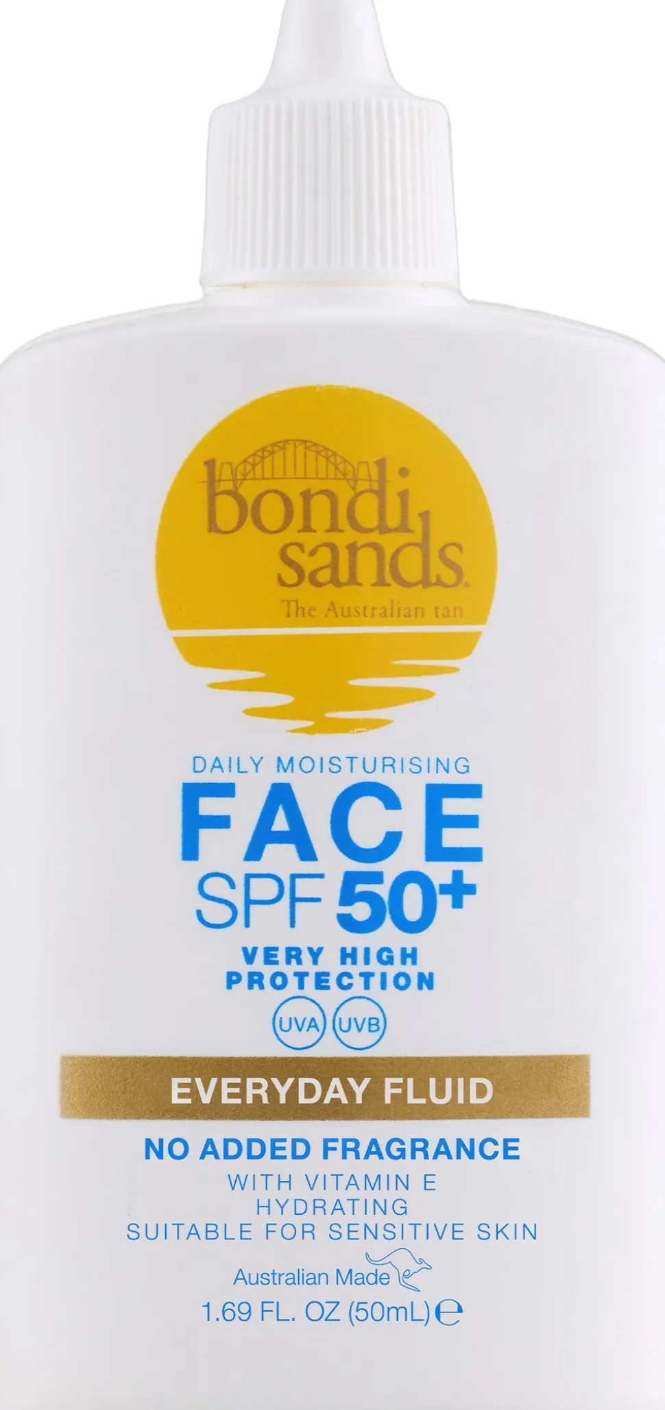 Nyd en solbeskinnet dag på Bondi Sands’ måde med vores parfumefri SPF 50+ Face Fluid. Denne ultra lette ansigtscreme giver UVA- og UVB-beskyttelse, er mild, absorberes hurtigt og tørrer til en usynlig overflade. Kan bæres alene eller under sminke. Dermatologisk testet. Velegnet til følsom hud. Ikke-komedogen – tilstopper ikke porerne.