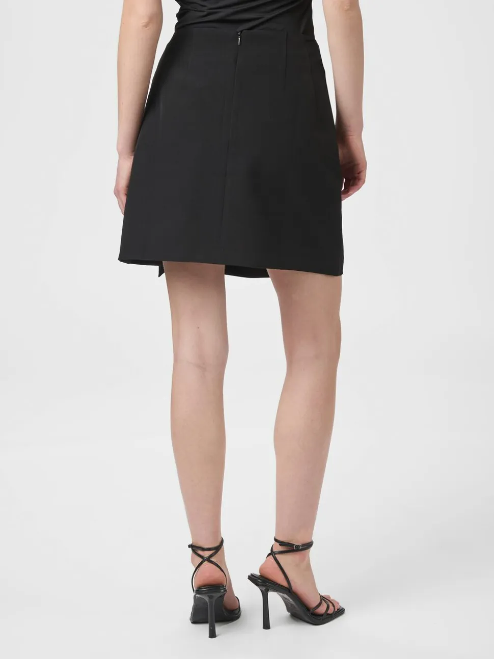 Kort slå-om-nederdel. Nederdelen har en normal talje, et dekorativt spænde og lukkes med en skjult lynlås bagpå. Pasformen er almindelig. Modellen er iført størrelse 36.