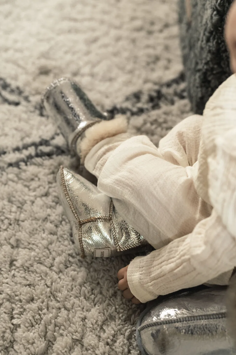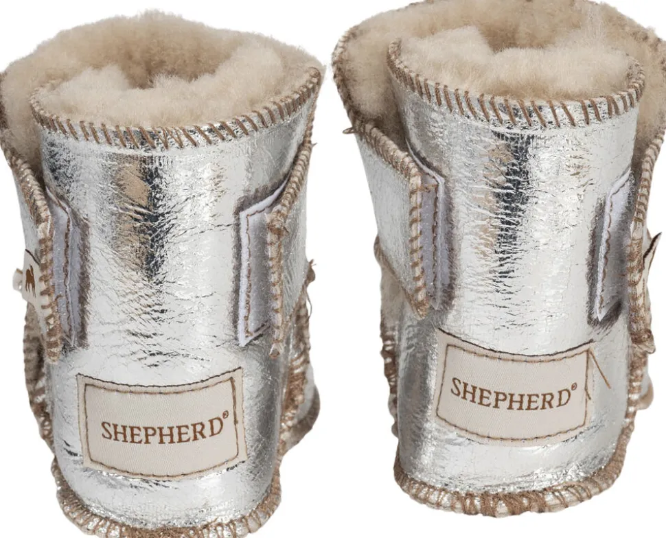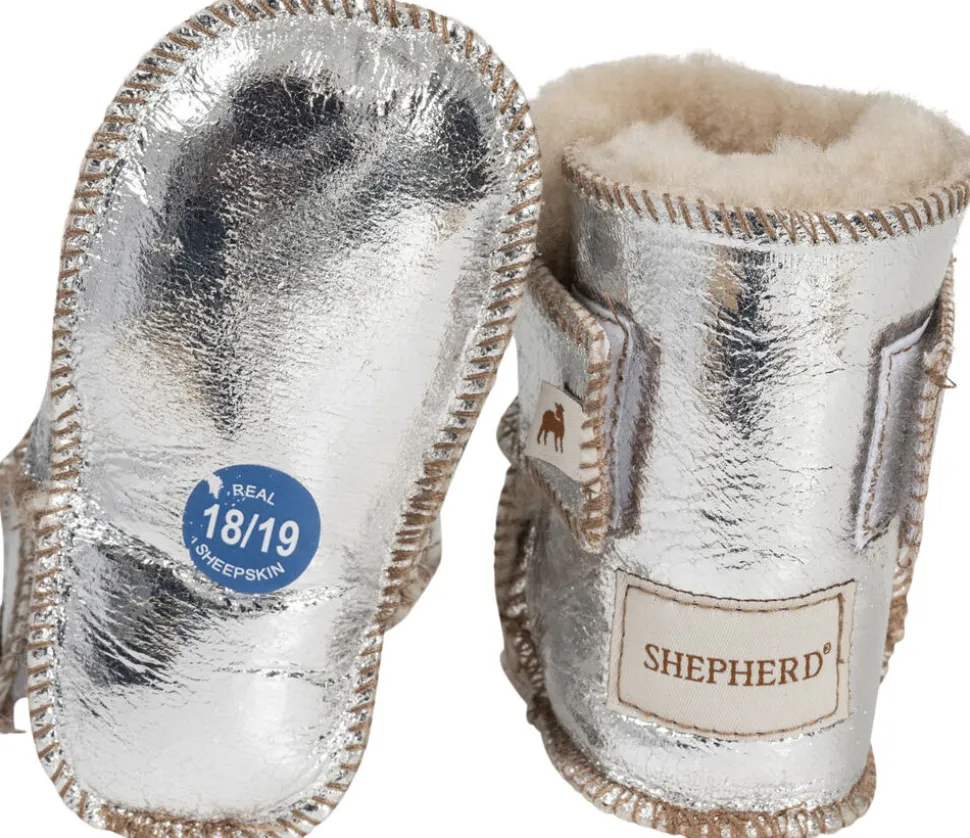 Shepherd Borås er et par bløde babysutsko i fåreskind. Sutskoene er udformet i en ankelhøj model med justerbar velcrolukning i siderne, som hvilket gør, at de sidder godt og er lette at tage af og på. Blød sål i ruskind.