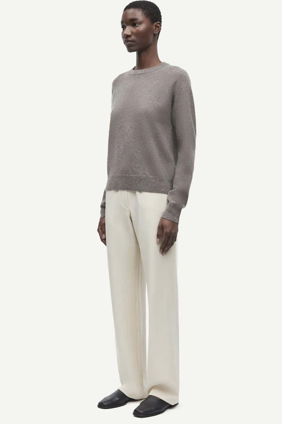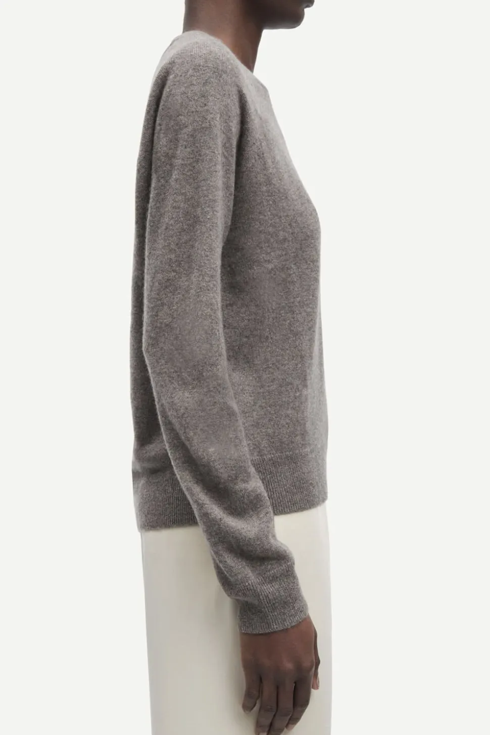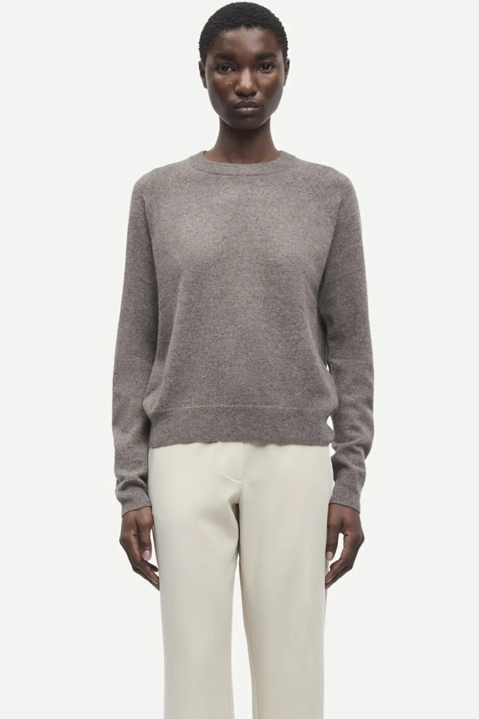 Sweater med løs pasform og raglanærmer Ribstrikdetaljer i den runde hals, manchetterne og forneden. Strikket i fin kvalitet. Hovedmaterialet er fremstillet af 100% kashmir. Dette produkt er GCS-certificeret. GCS understøtter den ansvarlige produktion af kashmiruld.