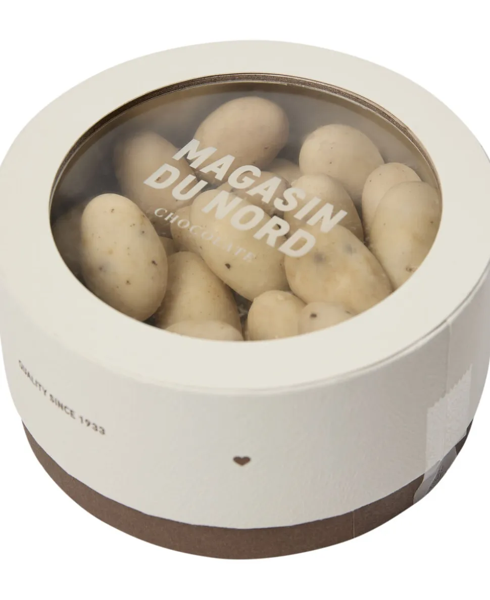 Mandeldragé fra Magasin du Nord Chocolate med hvid chokolade og lakridsgranulat i en dekorativ æske. Mandeldragén er produceret i Danmark og er lavet af udsøgte råvarer. Forkæl dig selv eller en du har kær med denne fine gaveæske.