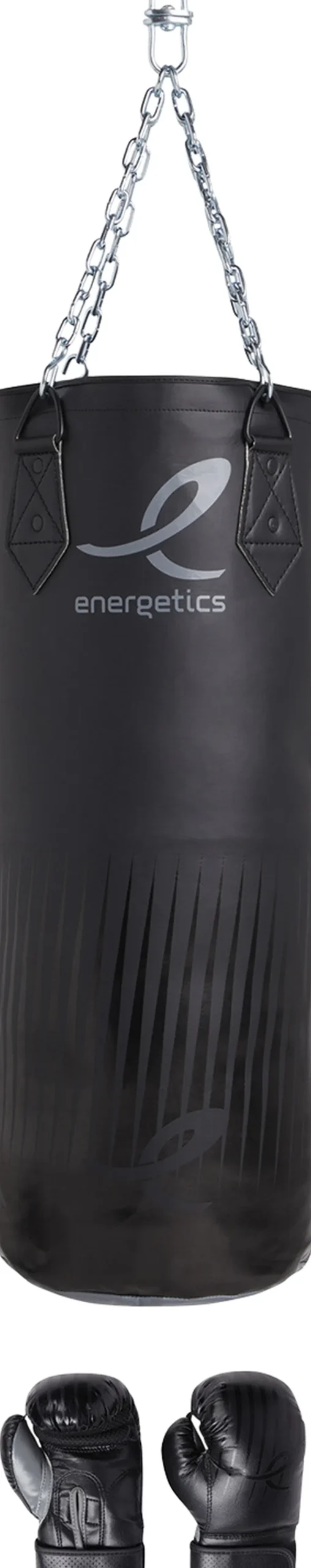 Dette Energetics boksesæt til børn inkluderer en 60 cm lang og 8 kg tung boksepude fremstillet i nylon og slidstærke PU boksehandsker – Dette sæt byder på basisopsætningen til de unge boksere, der skal prøve kræfterne af inden de bliver seriøse med sporten.