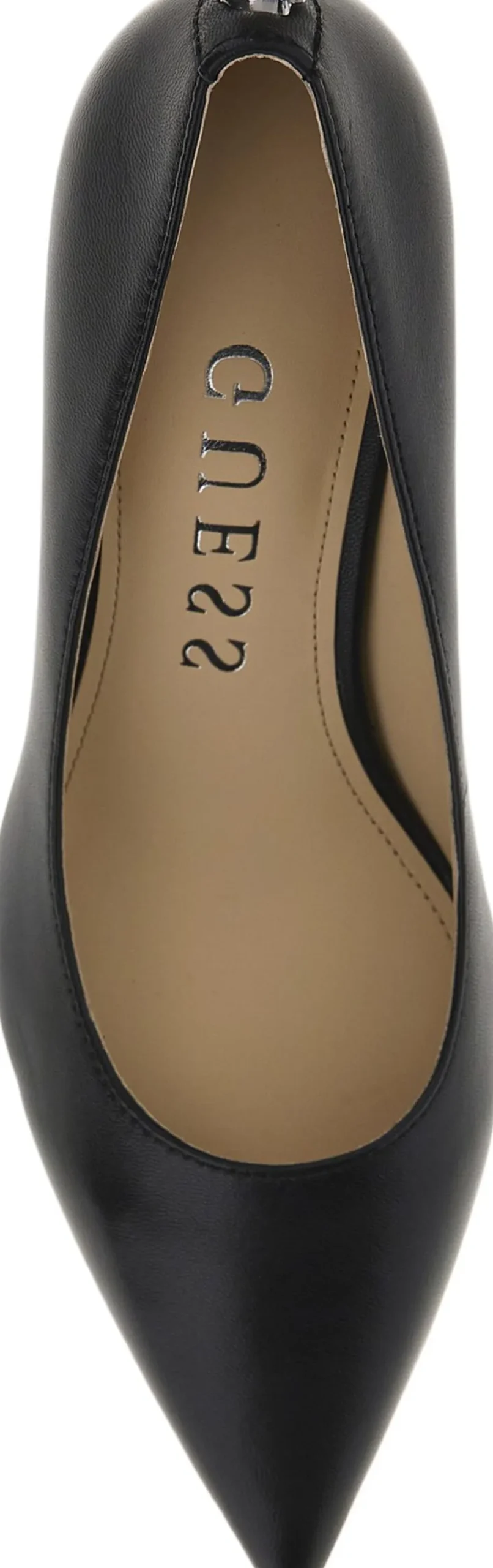 Sko fra GUESS i en skøn læderkvalitet. Skoen er en klassisk stilet med en smal hæl, en spids snude samt en lille logodetalje bagpå. En elegant sko i den lækreste kvalitet.