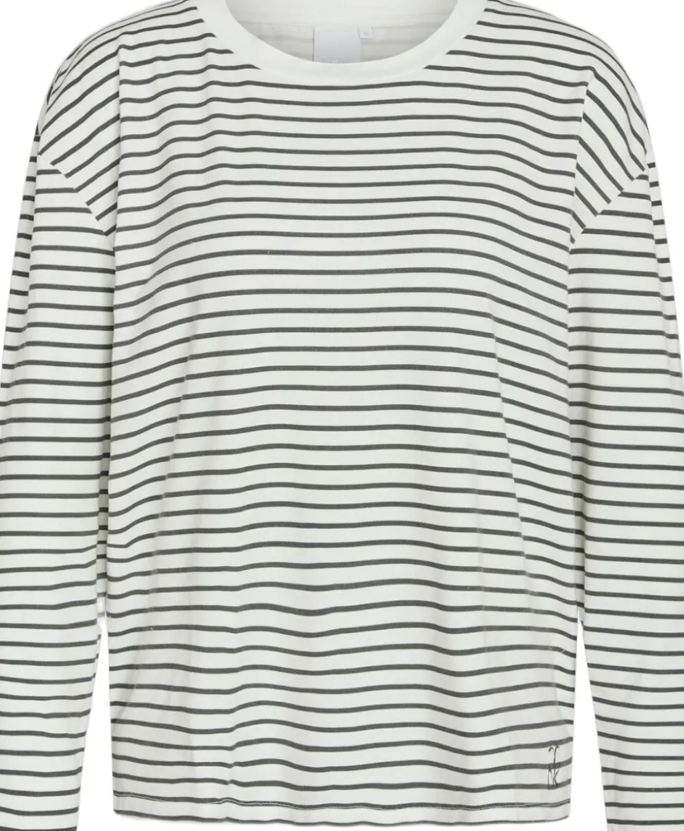 En blød og let langærmet t-shirt i bamboo-viskose og økologisk bomuld med 5% elastan, der giver behagelig stræk og komfort hele dagen. De brune striber skaber et roligt, feminint udtryk, ideel til afslappede og stilrene looks.