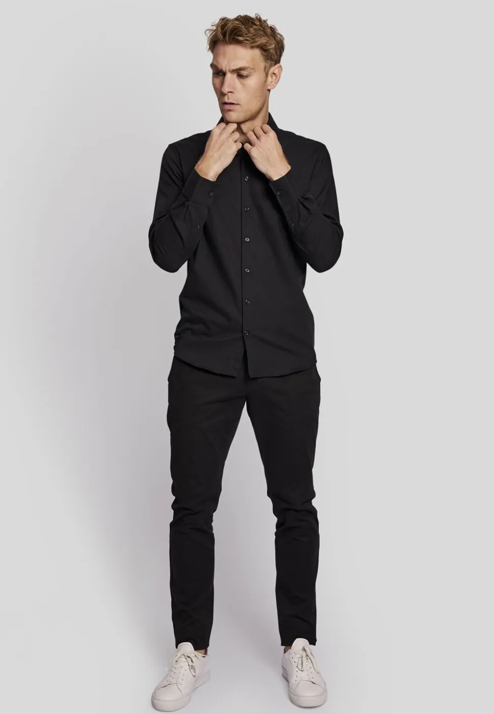 Vores moderne skjorte med pasform er det perfekte valg til Herre, der har brug for eller foretrækker en bredere pasform. Alle vores forretningsskjorter er fremstillet af 100 % bomuld i almindelig vævning. Denne klassiske Fast skjorte har en cutaway-krave og justerbare manchetter