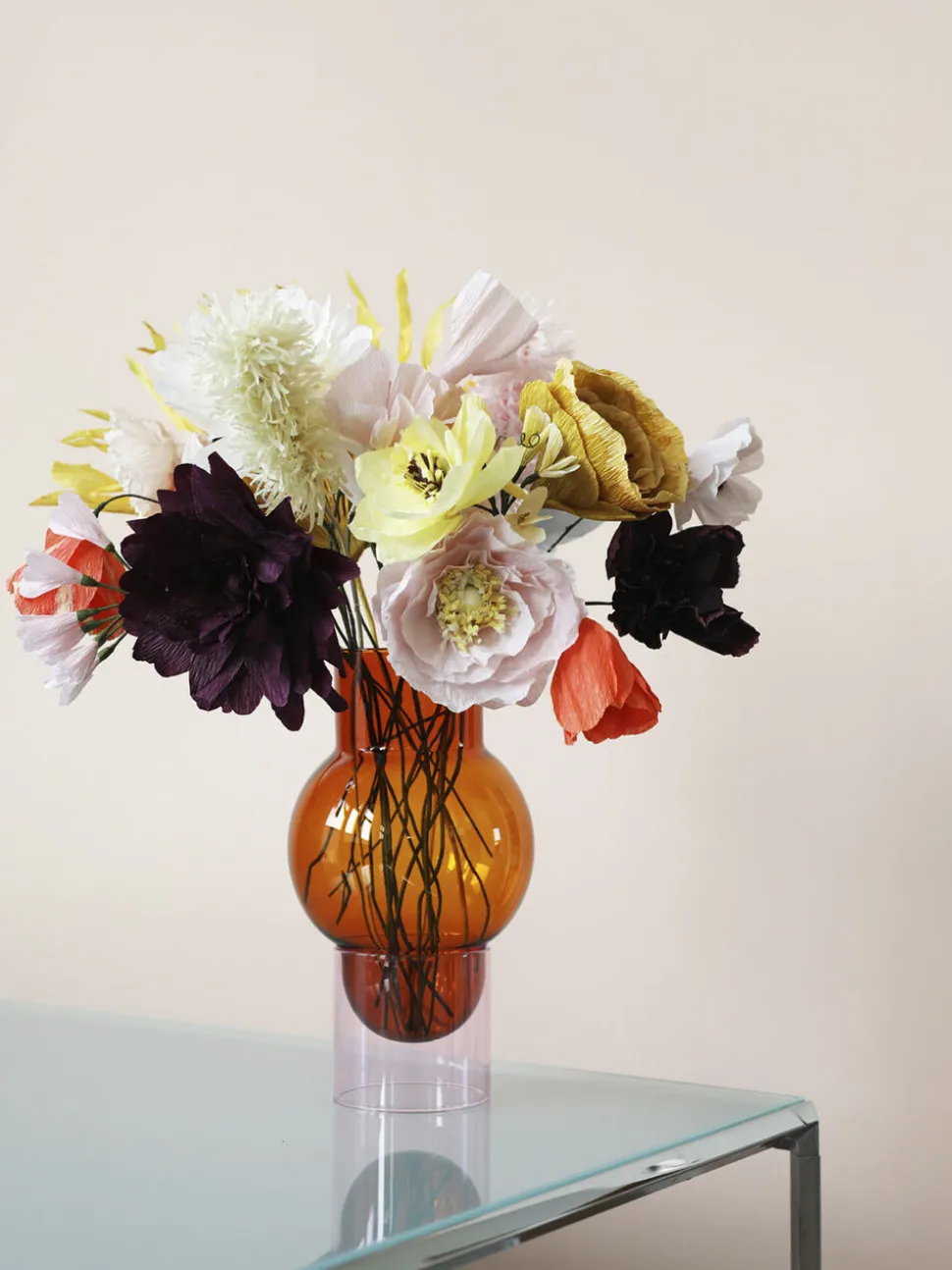 MODEL: ROSE TUBE + AMBER BUBBLEBubble Tube kollektionen er en serie af håndlavede glasvaser designet til en større buket. Glasvasen fås her i en rav farvet bubble. Den elegante vase hviler i en cylinderformet fod af rosa farvet glas og giver vasen en lethed og et feminint udtryk. MÅLÅBNING Ø90mmBOBLEN Ø150mmTOTAL HØJDE H270mmVasen er designet af arkitekt Mikkel Lang Mikkelsen.