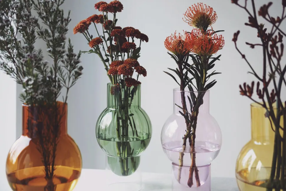 MODEL: ROSE TUBE + AMBER BUBBLEBubble Tube kollektionen er en serie af håndlavede glasvaser designet til en større buket. Glasvasen fås her i en rav farvet bubble. Den elegante vase hviler i en cylinderformet fod af rosa farvet glas og giver vasen en lethed og et feminint udtryk. MÅLÅBNING Ø90mmBOBLEN Ø150mmTOTAL HØJDE H270mmVasen er designet af arkitekt Mikkel Lang Mikkelsen.