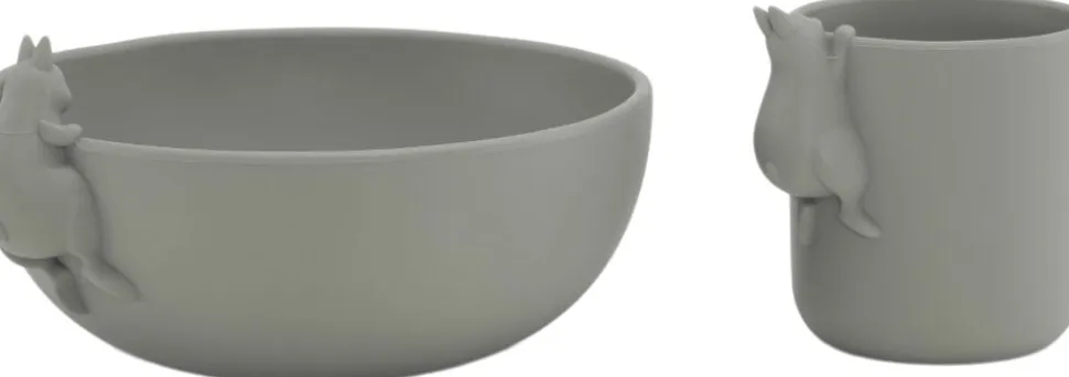 100 % silikone. Opvaskemaskine, kan tåle op til 100 °C. Mikrobølge sikker. Temperatursikker fra -40 °C til 230 °C. ADVARSEL: Når produktet anvendes med stærkt farvede fødevarer og væsker, kan det absorberes i overfladen og forårsage pletter. Målinger: Skål – Ø15xH5.5cm, kop – Ø6.5xH7cm. Testet og i overensstemmelse med EU-bestemmelser vedrørende fødevarekontakt 1935/2004 og tysk LFGB §30 og 31. 18m+