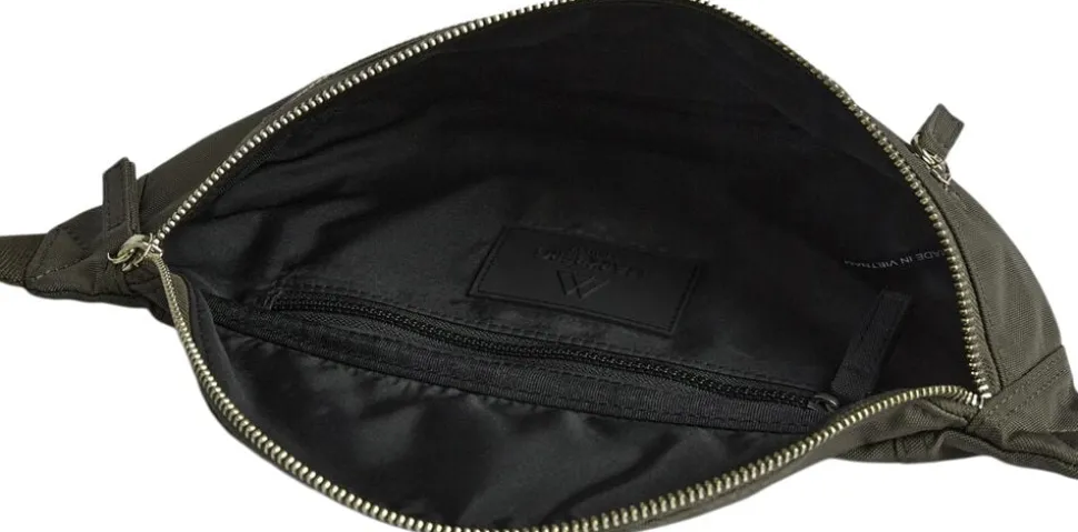 Cargo Bum bag fra Markberg er en praktisk og stilfuld bæltetaske, der kombinerer funktionalitet med bæredygtighed. Tasken er lavet af genanvendt polyester, hvilket gør den til et mere miljøvenligt valg. Den rummelige indvendige opbevaringsplads gør det nemt at organisere dine nødvendigheder, mens den lille lynlåslomme hjælper med at holde mindre genstande sikre og let tilgængelige. På fronten har tasken to lynlåslommer, hvilket giver ekstra plads til opbevaring af småting. Den justerbare strap sikrer, at du kan tilpasse tasken til din ønskede pasform, så den sidder komfortabelt hele dagen. Markberg-logoet på fronten er lavet i vegansk silikone, hvilket viser virksomhedens engagement i at undgå animalske materialer. Taskens for består ligeledes af 100% genanvendt polyester, hvilket yderligere understøtter dens bæredygtige profil. Med målene 13 cm x 31 cm x 8 cm er Cargo Bum bag både kompakt og rummelig, hvilket gør den ideel til daglig brug såvel som til rejser.