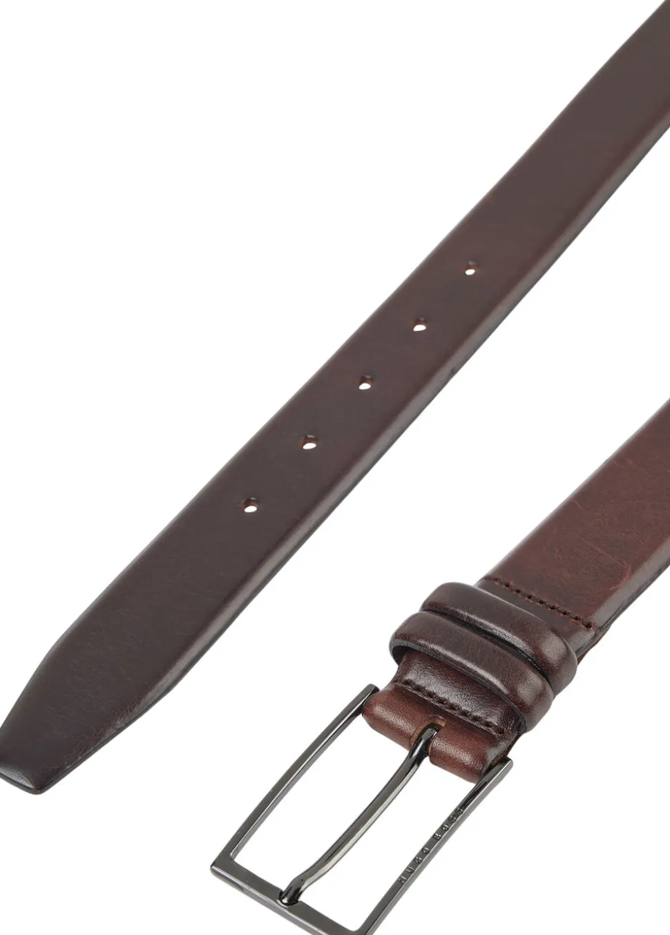 Enkelt og klassisk bælte fra BOSS i det fineste læder med et helt enkelt firkantet spænde i børstet stål. Perfekt tilbehør til den klassiske ‘Work Wear’-garderobe. Bredde: 3,5 cm