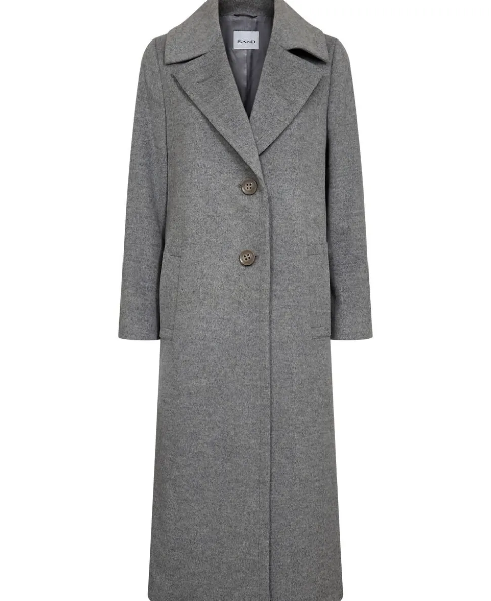 Lang frakke i uldblanding med ekstra stor revers og sidelommer. Klassisk design med knaplukning foran. Composition: 85% Wool, 15% Cashmere.