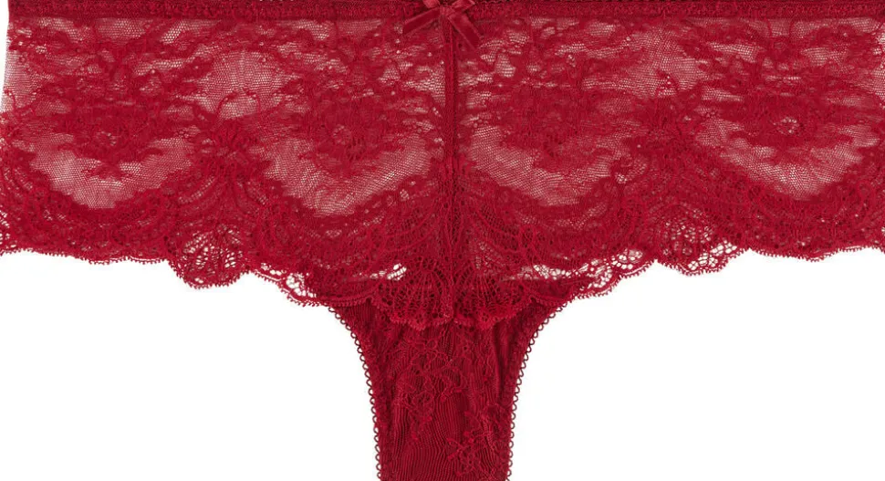 Danse des Sens omarbejder de frække underbukser i bløde blonder. For- og bagsiden har en takket kant, der blødgør det moderne look for et forførende look dækket af ruller. En lille satinsløjfe giver et sexet touch.