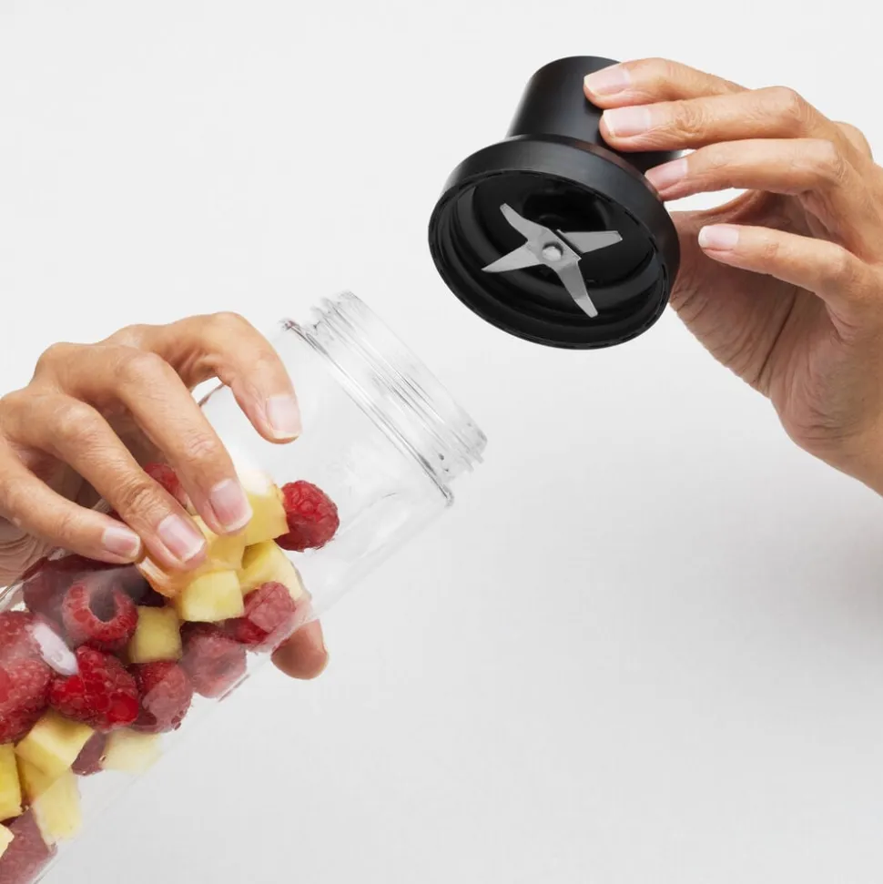 2 i 1-stavblender og blender med takeaway-flaske. PrecisionMix indeholder en takeaway-blandeflaske, så du kan blende din yndlingssmoothie og tage den med dig på stedet. Derudover leveres apparatet som standard med hakker til at skære grøntsager på sekunder, piskeris til æggehvider samt et bæger. – Takeaway-blandeflaske til smoothies – Hakker til hurtigt at skære løg uden tårer. – Fire smedede stålblade til silkebløde blandinger – Kraftfuld 850 W motor – Variable hastighedsindstillinger, velegnet til et hav af opskrifter