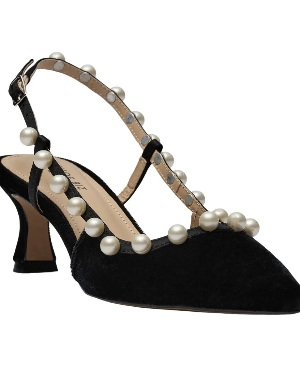 Håndlavede sorte slingback-pumper med perledetaljer – en luksuriøs sko til særlige lejligheder Heel – 6 cm