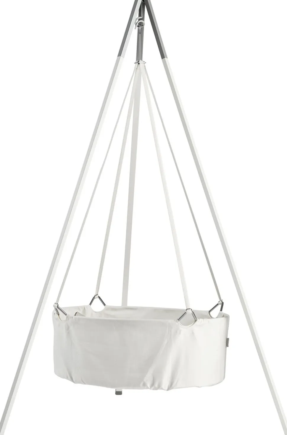 Alle børn har brug for en tryg base, når de skal sove. I Leander Classic vuggen ligger dit barn blødt og sikkert, som i en lille, tryg rede. Vuggen hænger fra ét enkelt punkt – enten fra loftet eller et stativ. Den kan derfor svaje roligt og frit i alle retninger. Med de bløde bevægelser oplever dit barn en vuggende og velkendt følelse, som minder om tiden i mors mave. Bevægelserne virker beroligende, mens de stimulerer din babys sanser, balance og motorik.