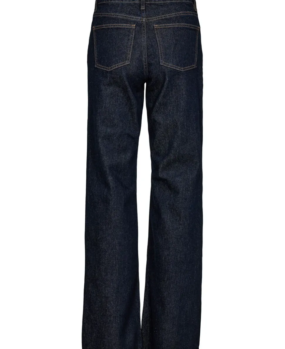 Jeans fra Magasin du Nord Collection i den blødeste kvalitet af 99% økologisk bomuld med GOTS-certificering. Bukserne er en klassisk ‘5 pocket’-model med knap- og lynlåslukning, en høj talje samt vide ben. Et par skønne jeans i en lækker kvalitet.