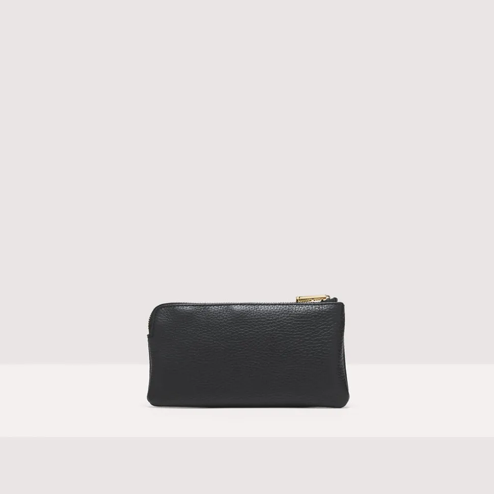 Skøn clutch fra Coccinelle i den smukkeste læderkvalitet. Clutchen er enkel i modellen med ét rum med lynlåslukning samt en aftagelig rem. 3 små indvendige lommer til kreditkort. Derudover har clutchen mærkets navn på fronten, hvilket giver en flot effekt. En rigtig fin clutch i en skøn kvalitet. Dustbag medfølger.