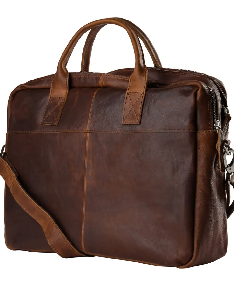 Axel i Catania skind fra Adax er en arbejdsmappe i kraftigt kalveskind og er inddelt i to hovedrum, der begge åbnes med lynlås. I det bagerste sidder en polstret PC-lomme og i det forreste finder du stiklommer, lynlåslomme samt plads til dine kuglepenne. Mappen har 2 polstrede bærehanke samt justerbar skulderrem. Vi anbefaler Adax læderbalsam samt Adax protections spray.