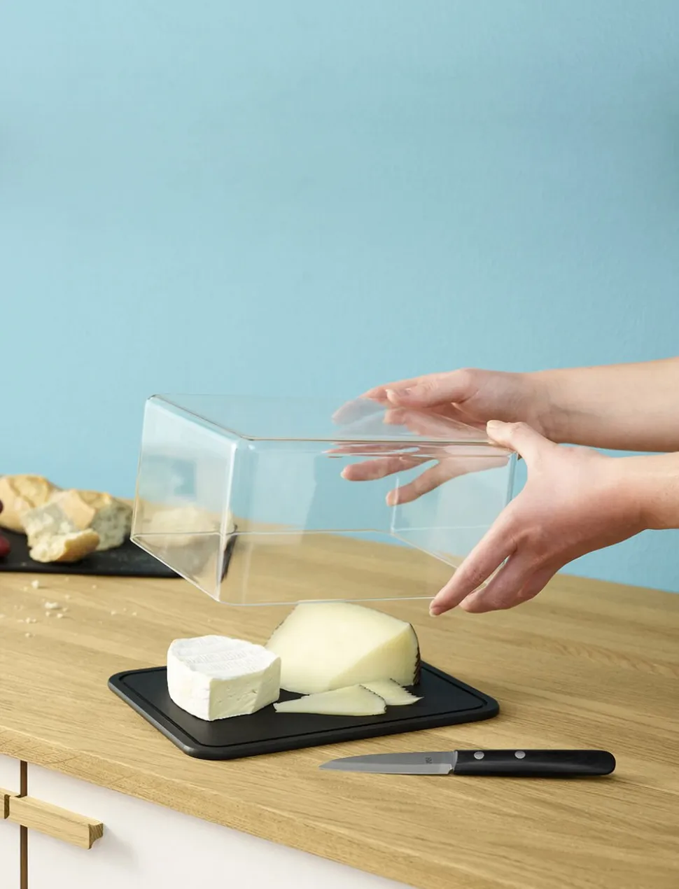 CONTAIN-IT er en osteklokke, der holder styr på osten eller pålægget i køleskabet og på spisebordet. Server din yndlingsost eller pålæg på serveringsbrættet af fibertræ, og når madvarerne skal tilbage i køleskabet sættes det gennemsigtige låg på, indtil CONTAIN-IT igen skal på bordet. Opbevaringsboksen er selvfølgelig fri for BPA og ftalater, og det funktionelle serveringsbræt i fibertræ er antibakterielt og kan gå i opvaskemaskinen.