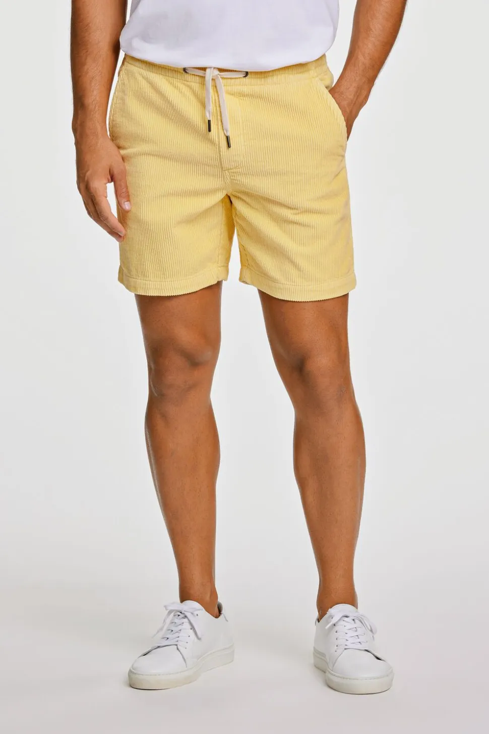 Fløjlsshorts fra Lindbergh White. Lavet i 100% bomuld med elastik og snøre i livet. Shortsene har to baglommer og to lommer i siden.