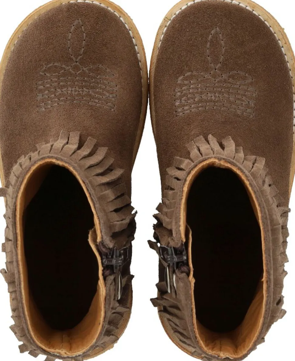 Cowboystøvle i ruskind frynser og western-inspireret tone-i-tone broderi.