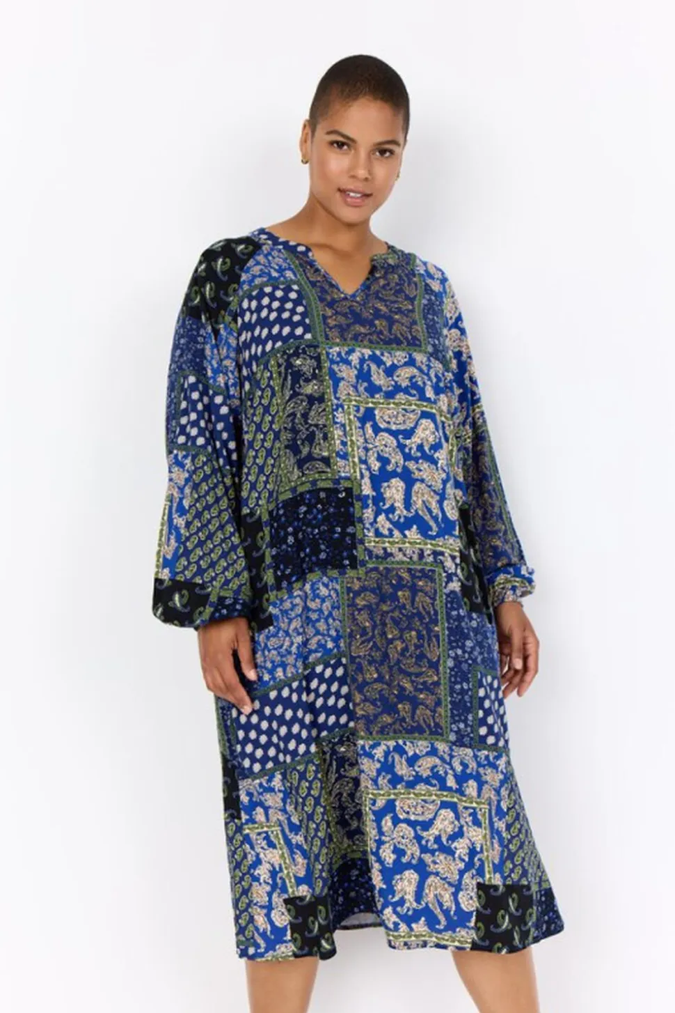 WA-NEA 3 er en kjole fremstillet af 100 % LENZING ECOVERO-viskose. Den har V-udskæring, paisleyprint og lange ærmer med knapmanchetter. Sæt den sammen med sandaler for et afslappet look eller med støvler for en mere elegant stil.