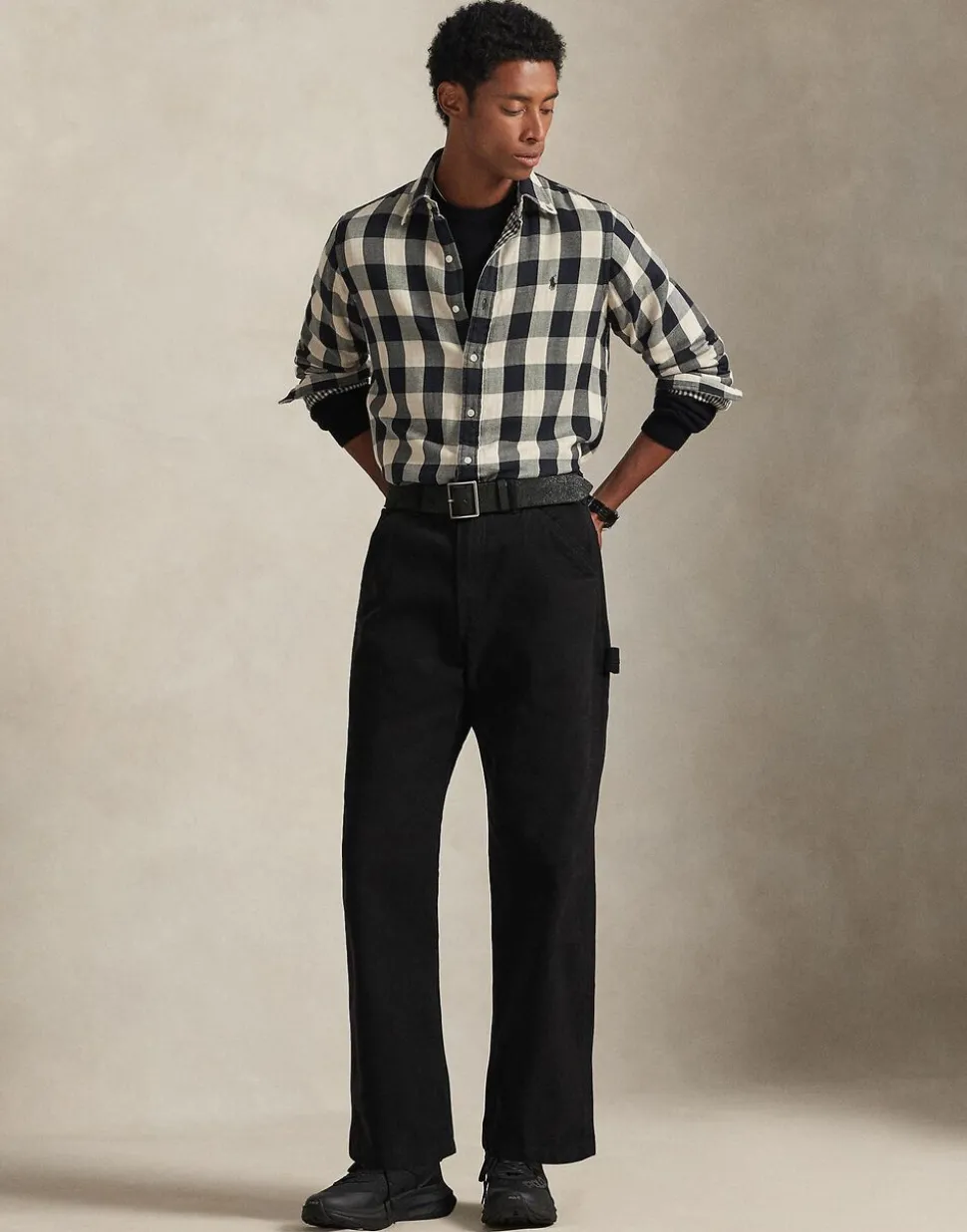 Denne ternede skjorte i dobbeltsidet bomuld har kontrasterende inderside, der er synlig, når ærmerne er rullet op