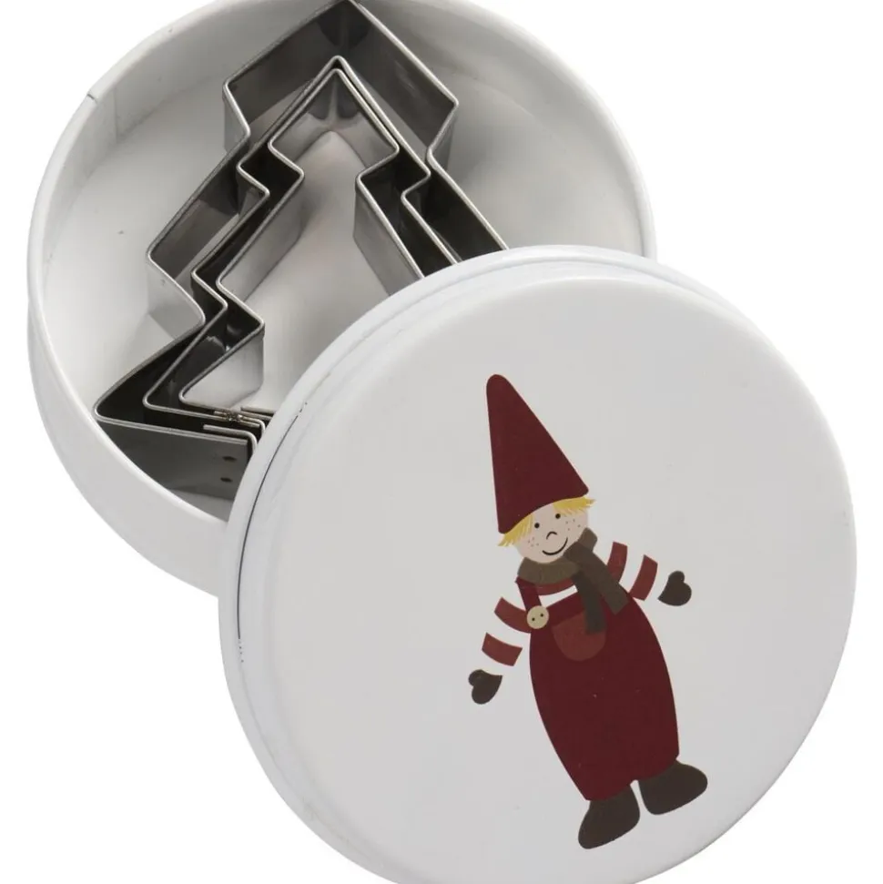 Dåse m/3 juletræ-kageudstikkere, nisse på låget