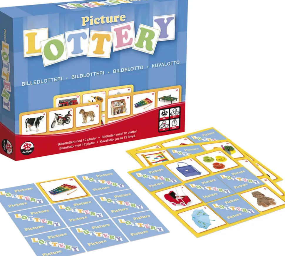 Det klassiske billedlotteri er et sjovt spil for den yngre del af familien. Det gælder om, at få dækket alle felterne på sin plade med de rigtige billeder og råbe “Banko”. Den, der først får pladen fuld, har vundet spillet. Spilletid, Ca. 15 minutter. For 2-6 spillere. Fra 4 år.