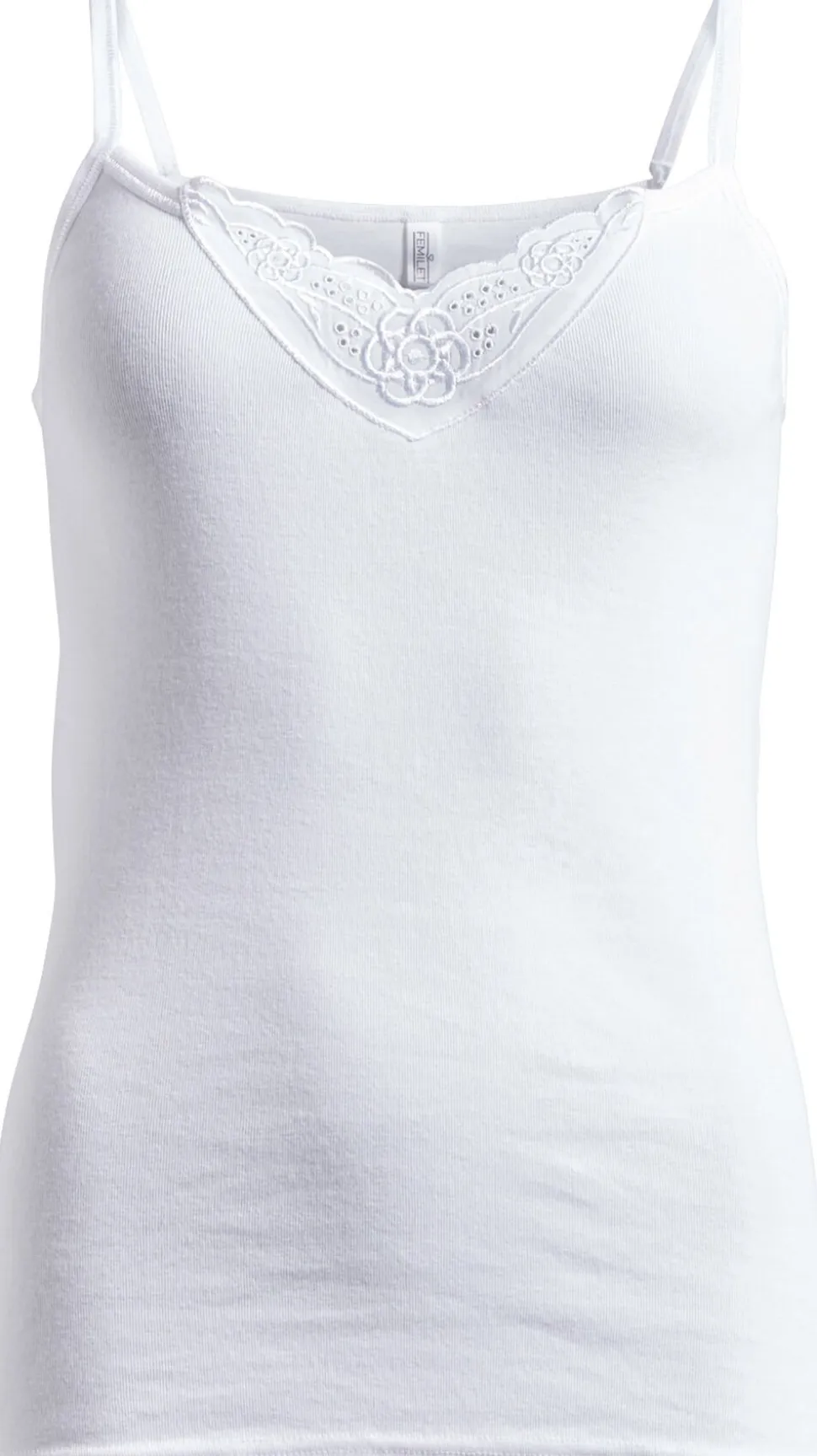 Debbie undertrøje med spagetti stropper og broderi motiv. God og behagelig 100% bomuldskvalitet. Ingen generende sidesømme, kun ren komfort.