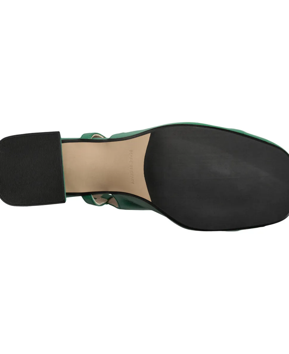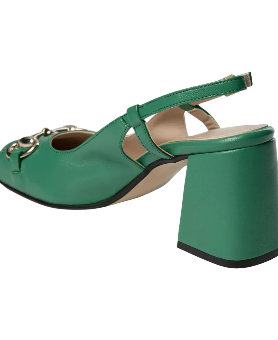 Slingback-pumps i læder med firkantet tå. Skoen er dekoreret med et guldspænde over forfoden og har en justerbar ankelrem. Delta-pumps er fremstillet på en skulpturel blokhæl, som giver skoen et moderne look. Materiale: Læderfarve: Grøn hæl: 7 cm størrelsesguide: Normal