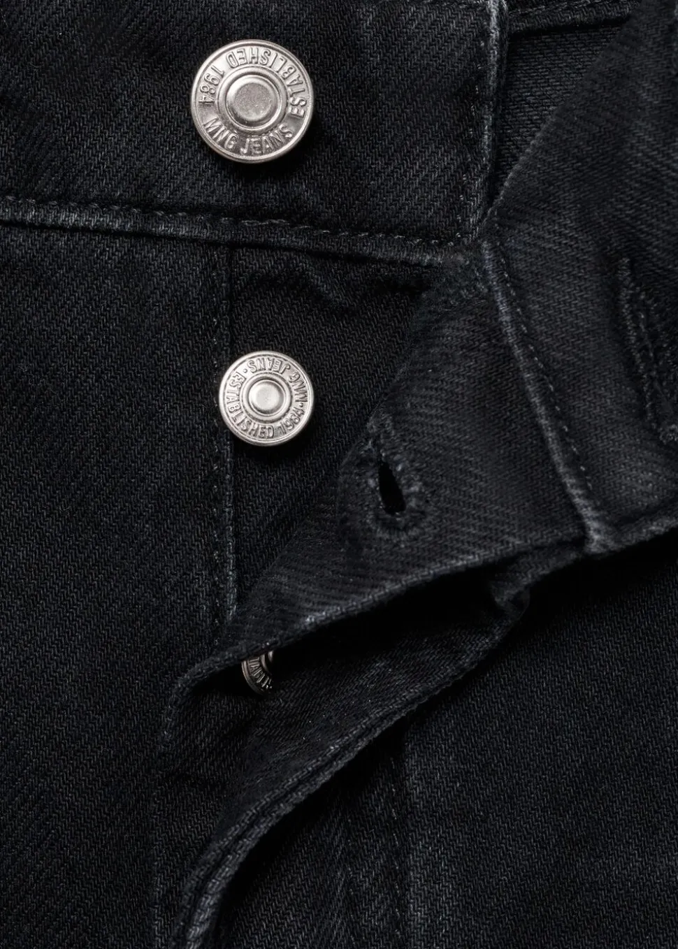 Denim-stil bomuldsstof, lige Design, kort Design, medium taljeBeltstropper, fem lommer, knap op, flosset kant.