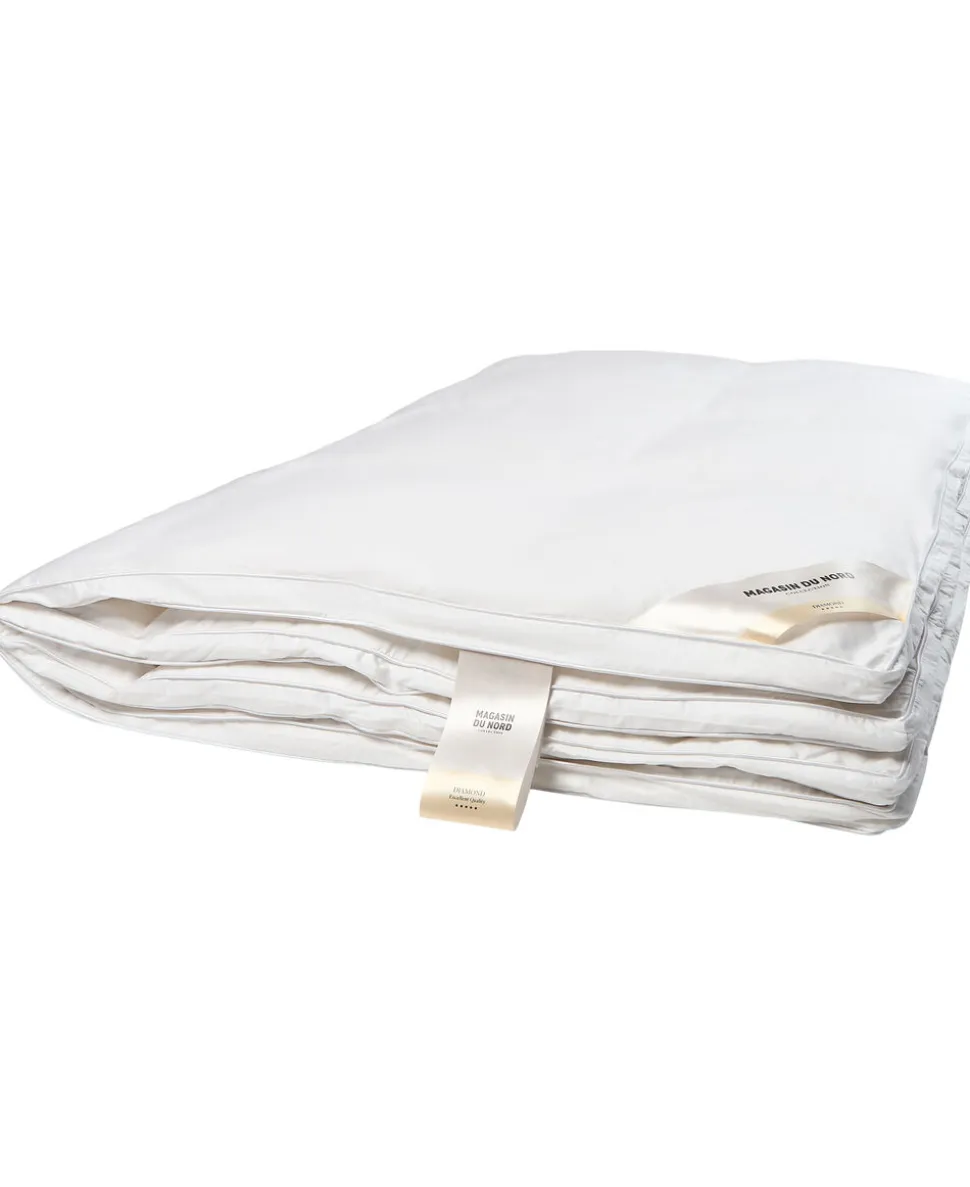 Diamant Gåsedunsdyne – Lun 140×220 cm: indeholder 560 g hvide Gåsedun med Bæreevne/isoleringsevne 800. Lækker dyne med de blødeste dun, våret er 100% Bomuld satin, hvilket giver et lækkert blødt og åndbart produkt. Hold hovedet koldt og kroppen varm med en Magasin Guld Gåsedunsdyne Lun Helårsdyne, som holder dig varm hele natten året rundt. Den lune Gåsedun helårsdyne er anbefalet til dig, der har en medium kropstemperatur eller middel rumtemperatur. Gåsedunsdynen er syet i kassetter, hvilket sikrer dig en jævn fordeling af fyldet og en fyldig dyne hver eneste dag. Dynen er deklareret af Astma-Allergi Nordic samt NOMITE-, Oeko-Tex- og Downpass-certificeret. En dyne til dig, hvor kun det bedste er godt nok.