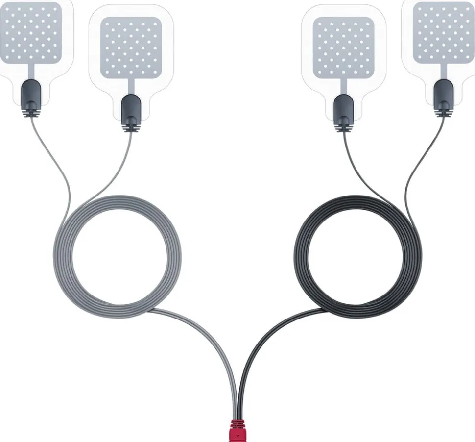 - 4 elektroder (45 x 45 mm) og 2 separat justerbare kanaler