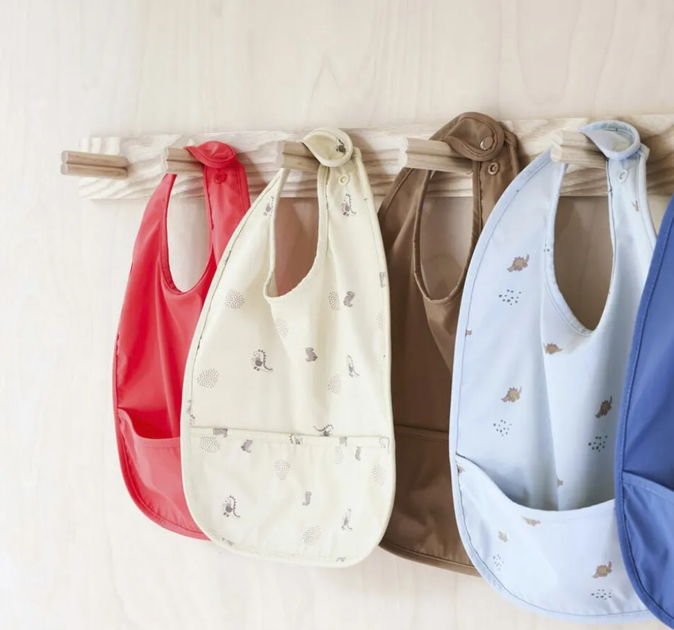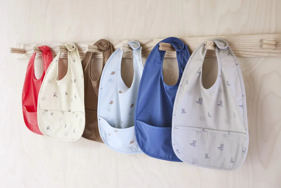 Med Dino sættet får du to praktiske hagesmække i et fint design med søde illustrationer af dinosaurer. De er lavet i genanvendt polyester og lukkes med en praktisk lukning i nakken.