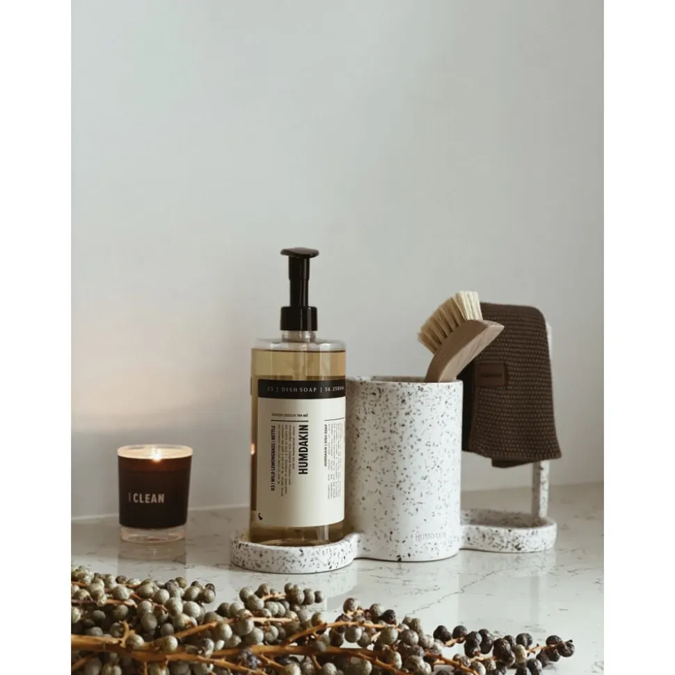 DISHWASHING KIT H 20 x L 30 x D 10 cm Terrazzo This dishwashing kit in terrazzo is a all in one dishwashing kit, that ensure room for all you need at your kitchen zink. The storage part is scratch-free and cleaning friendly. Care-